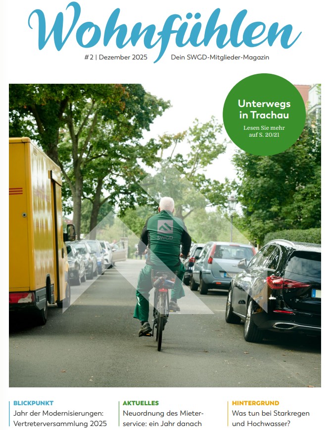 In der Dezemberausgabe unseres Mitgliedermagazins informieren wir Sie wieder rund um die aktuellen Themen in unserer Genossenschaft: das große Jahresinterview mit den Vorständen, die Vertreterversammlung, den Beginn des Glasfaserausbaus und vieles mehr. Dazu spannende Geschichten von Mietern und Mitarbeitern und wir feiern 10 Jahre Klotzscher Treff.